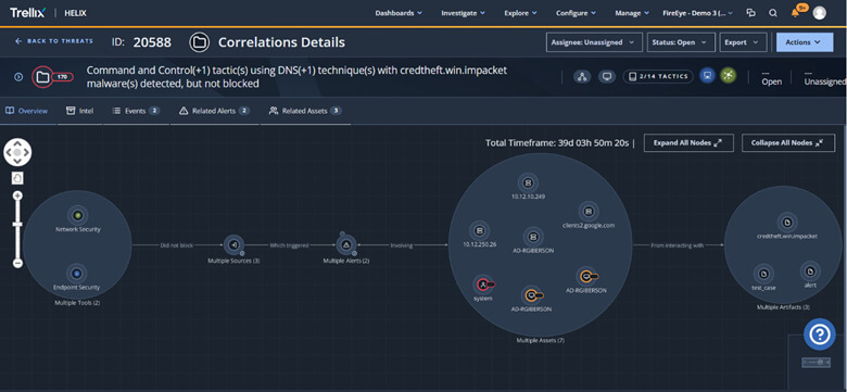 - Threat correlation: Identify initial attack deployment methodology, characteristics and subsequent access attempts across the security landscape without the need for manual effort or multiple toolsets.