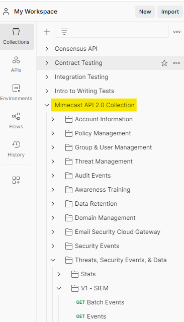 Postman provides a clear visualization of API responses, making it easier to understand and work with the data. Using the Mimecast API 2.0 Collection, we can get a variety of endpoints to work around. After plugging in the Client ID, Client Secret, and the Authentication details, we can generate the OAuth2.0 Token, and start sending requests and receiving responses.
