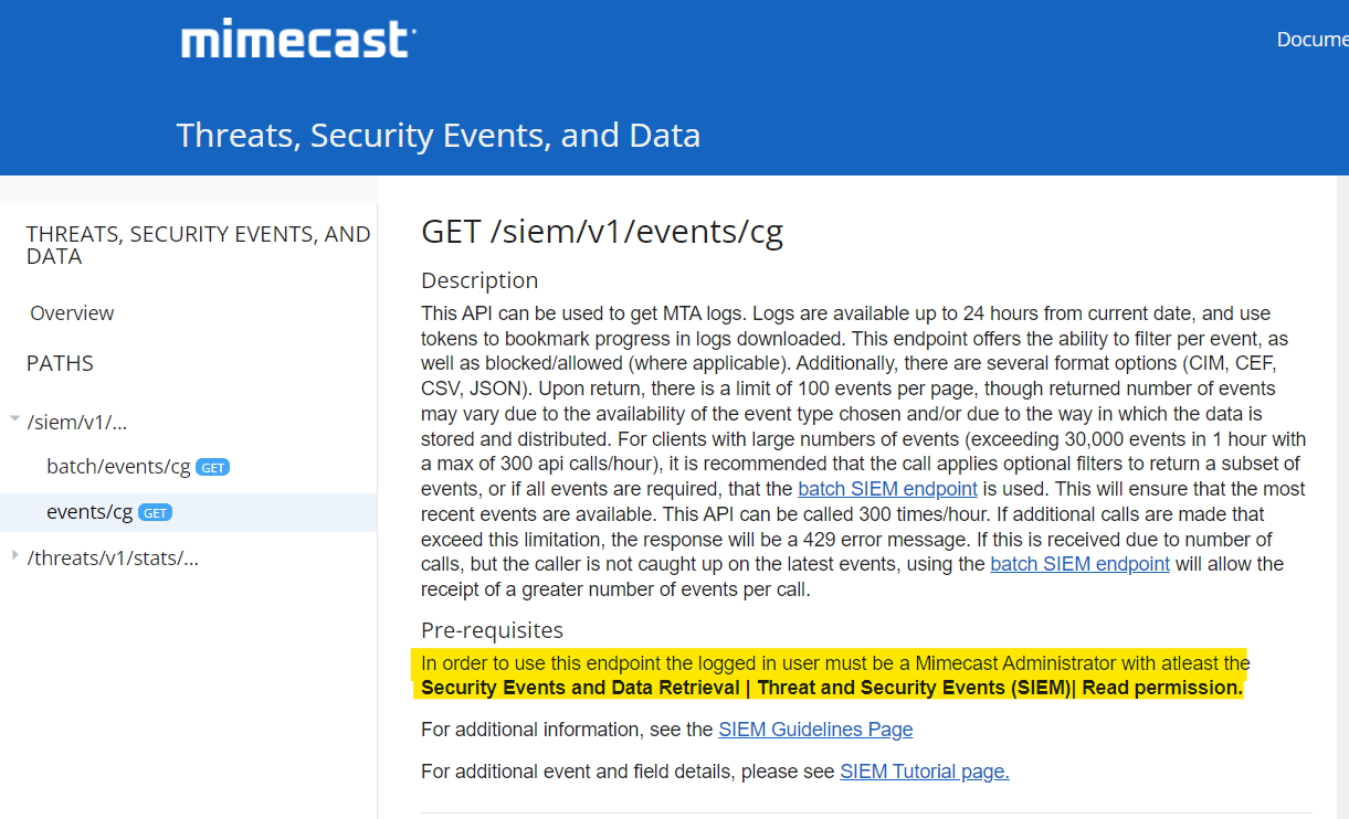 Every application created on the Administrative Console will function depending on the roles assigned to the logged in user generating the API application. The required permissions information is mentioned on the Mimecast Developer Services page for every endpoint.