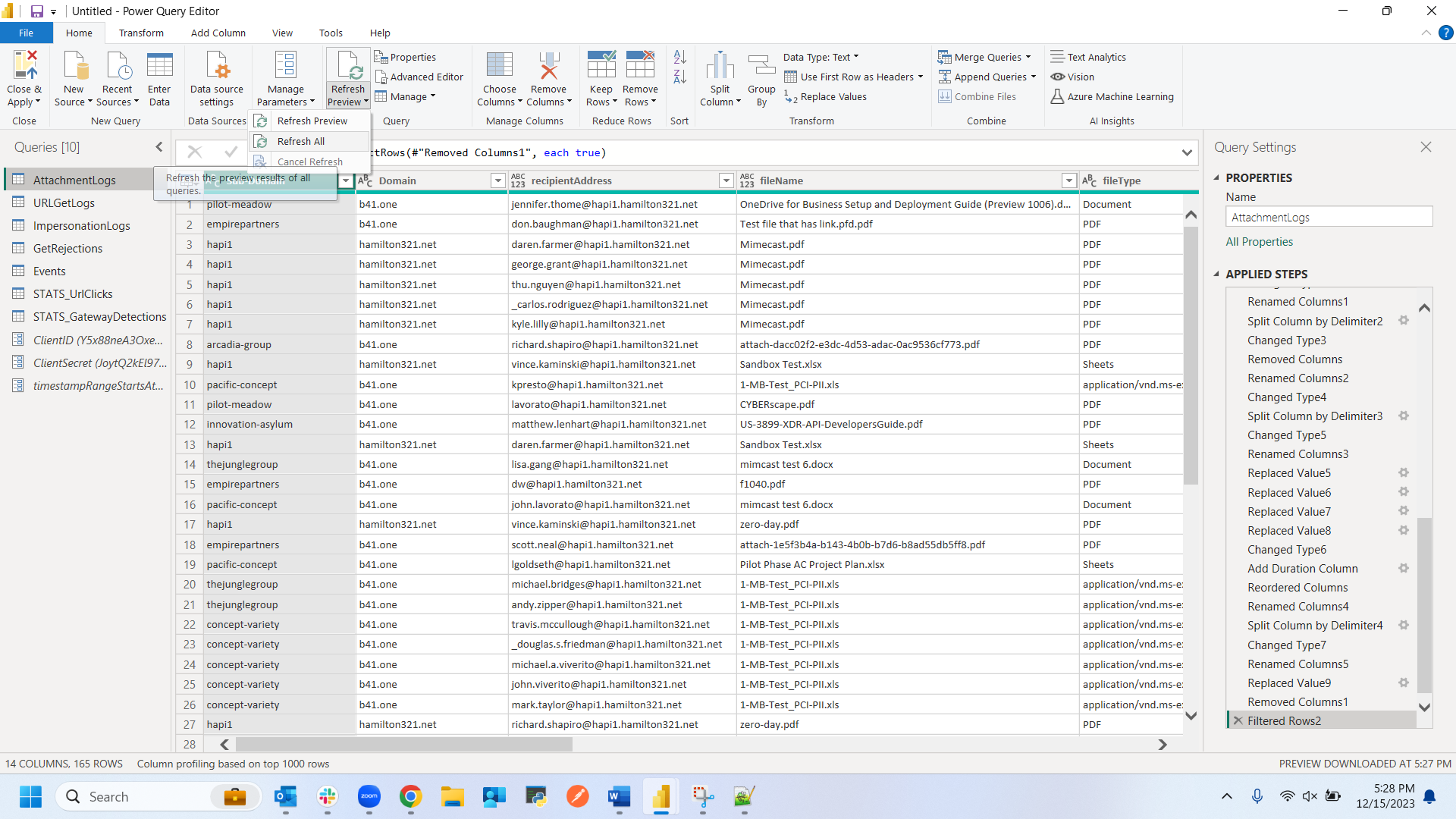 #"Removed Columns1" = Table.RemoveColumns(#"Replaced Value9",{"senderAddress.1", "actionTriggered", "subject", "fileHash", "definition"}),