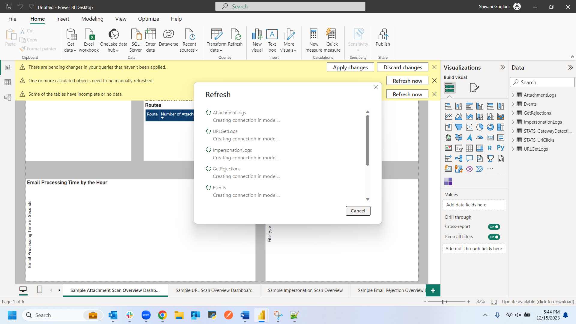 Please Note: All the “Apply Changes” and “Refresh now” (bright yellow) banners will go away by themselves. The refresh action above will connect the graphs on the dashboard with refreshed data.