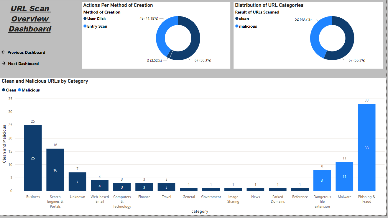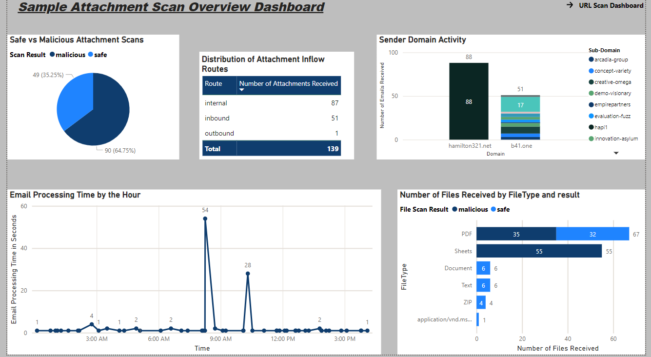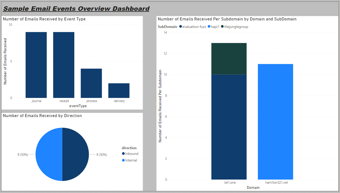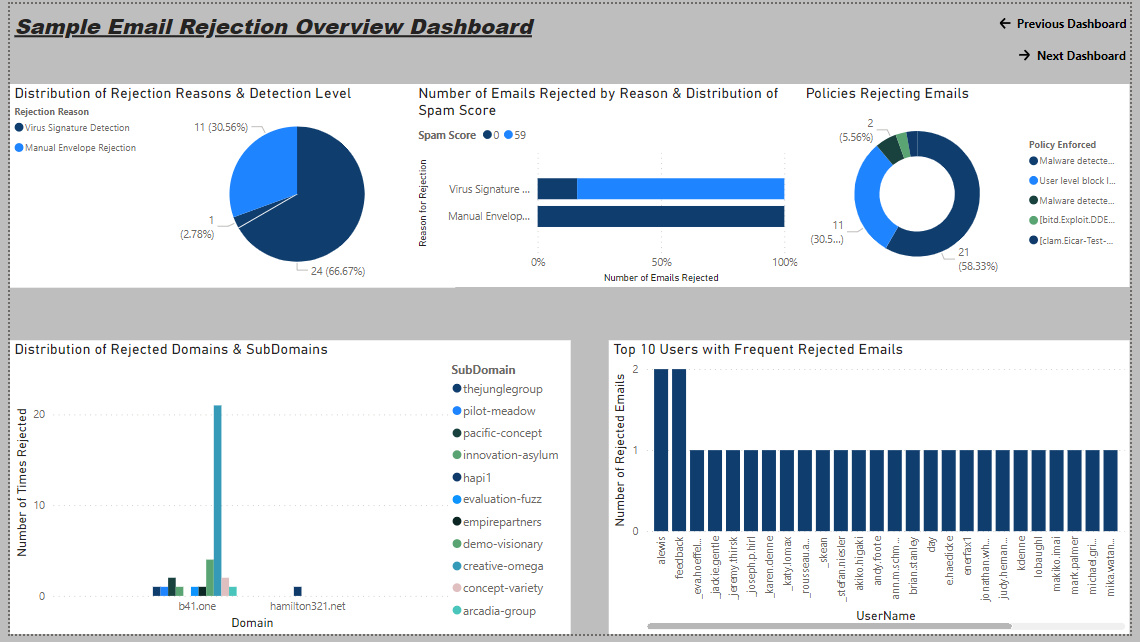 The below dashboards are examples of what the visualizations would appear like when the data is retrieved from your API. These are only samples of what and how the data can be displayed graphically, and is highly customizable, so as to depict your own use case.