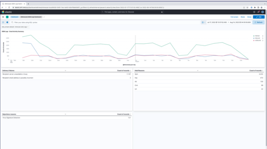 Mimecast data ingested adds additional data and context within Elastic Security to aid: