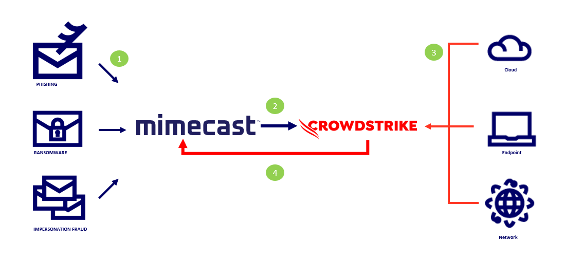 By integrating Mimecast with CrowdStrike’s Falcon® Platform, organizations can realize the full benefit of their cybersecurity investments and improve the organization's overall cyber resilience.
