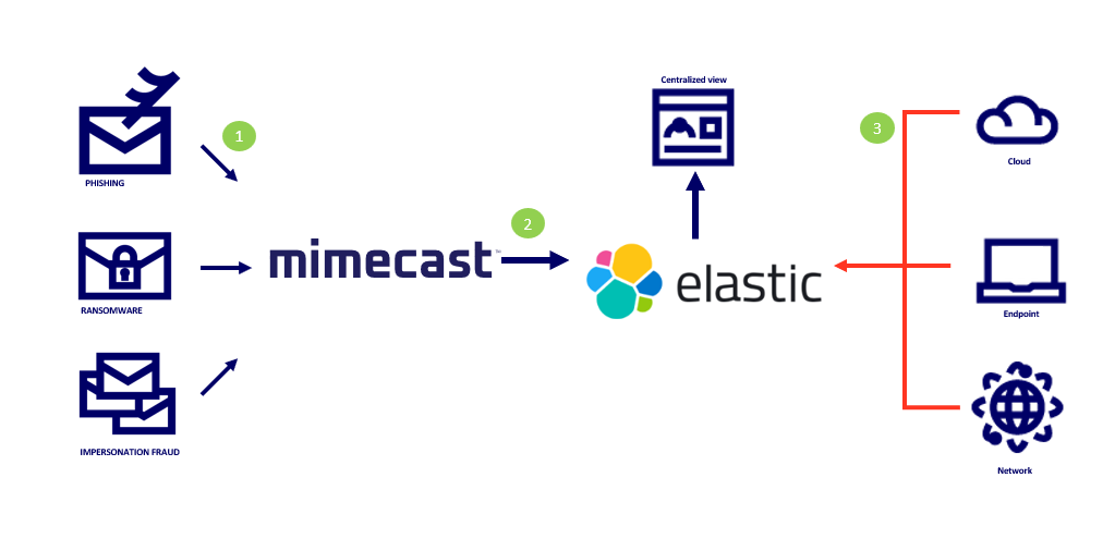 2. Email intelligence provided by Mimecast is sent to Elastic Security for normalization.
