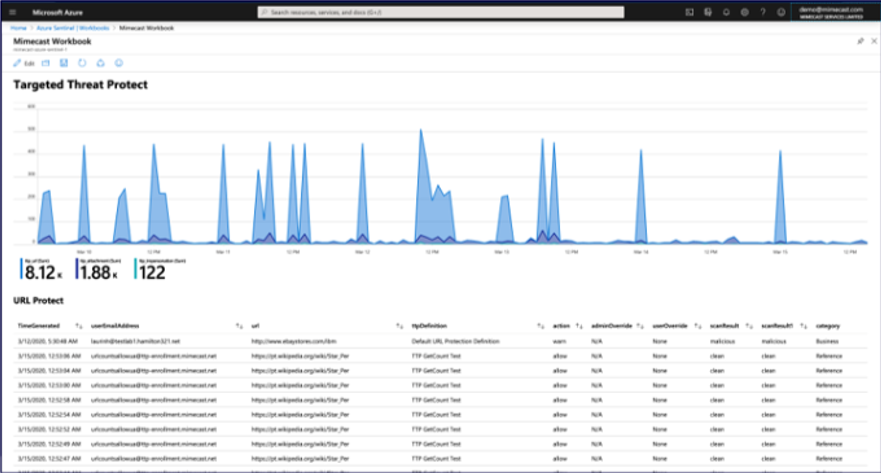 Mimecast data ingested adds additional data and context within Microsoft Sentinel to aid: