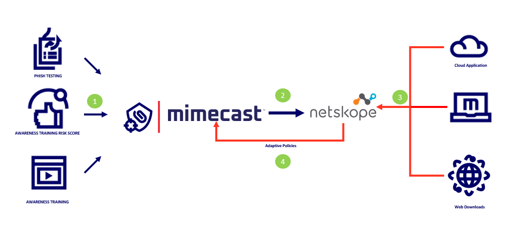 2. Mimecast's risk score is ingested by Netskope's cloud risk exchange.