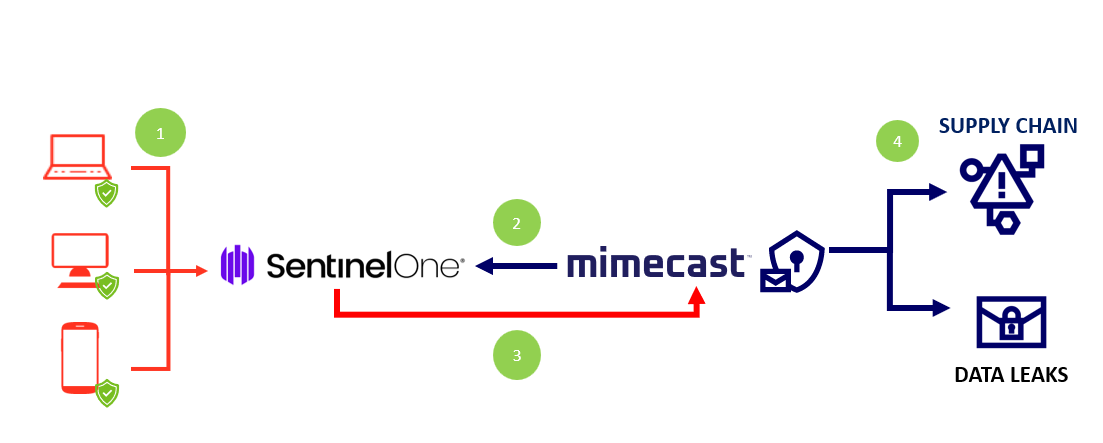 Mimecast and SentinelOne provide an integrated solution to stop threats, provide security insights and streamline response across the organization. By integrating Mimecast with SentinelOne, SecOps teams can standardize their incident response processes, accelerate the time it takes to detect and apply security measures for containing and remediating attack campaigns. The integration helps with cross-domain detections, by leveraging identity endpoint, application, email, and other tools to obtain a complete understanding of the threat. Through the sharing of intelligence from email and endpoint security solutions, analysts obtain increased visibility and context into threats that would not be addressed in a typical siloed security approach.