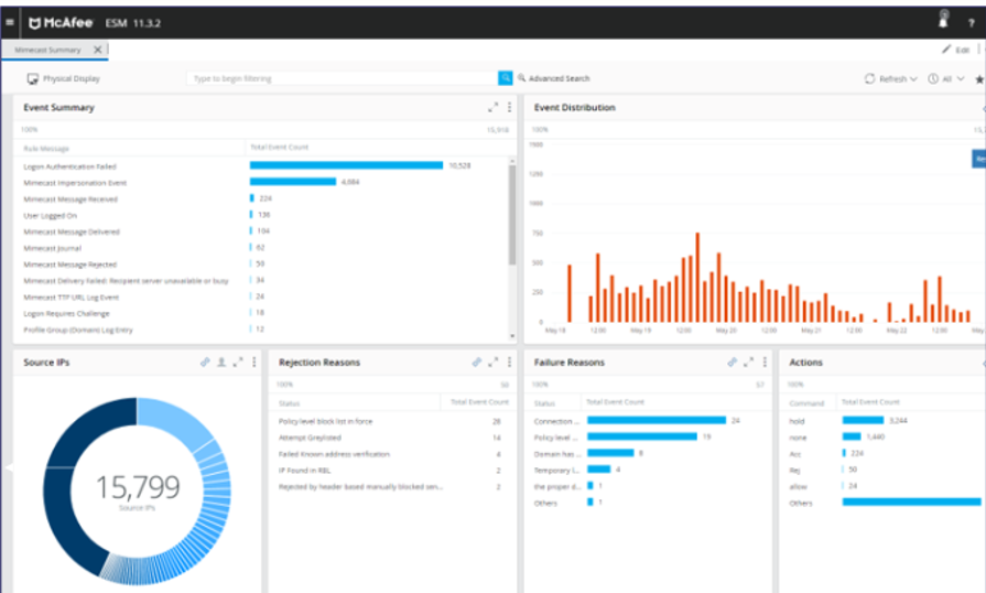 Enhance Intelligence - Correlate email-borne attacks with events observed in other security systems and leverage McAfee ESM advanced analytics to help detect and prioritize threats.